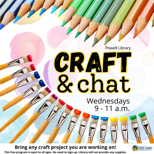 Let your Art out at the Powell Library's Craft & Chat happening on Wednesdays from 9 to 11 a.m. in the Homesteader Hall Meeting Room!