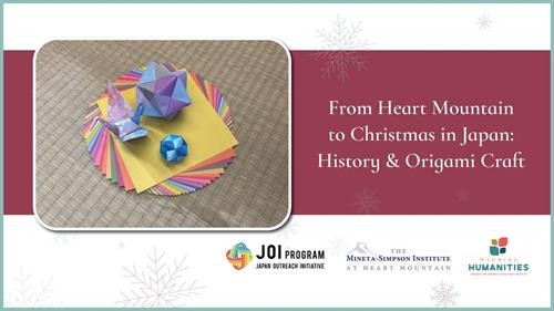 Haruka will talk about Christmas in Japan and at the camp. You will also make an origami (Japanese art of paper folding) ornament to take home with you.