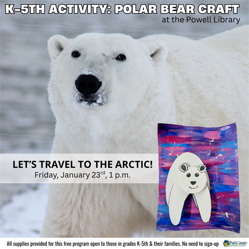 Let's spend an afternoon in the artic making polar bears out of cardstock & paint on Friday, January 23rd at 1 p.m.!