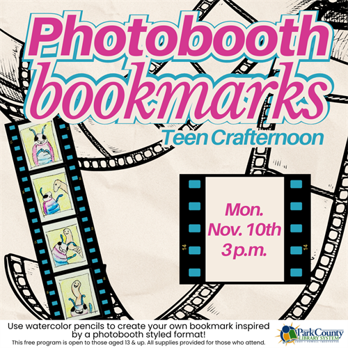 Use watercolor pencils to create your own bookmark inspired by a photobooth styled format at November's Teen Crafternoon happening on Monday, November 10th at 3 p.m.!